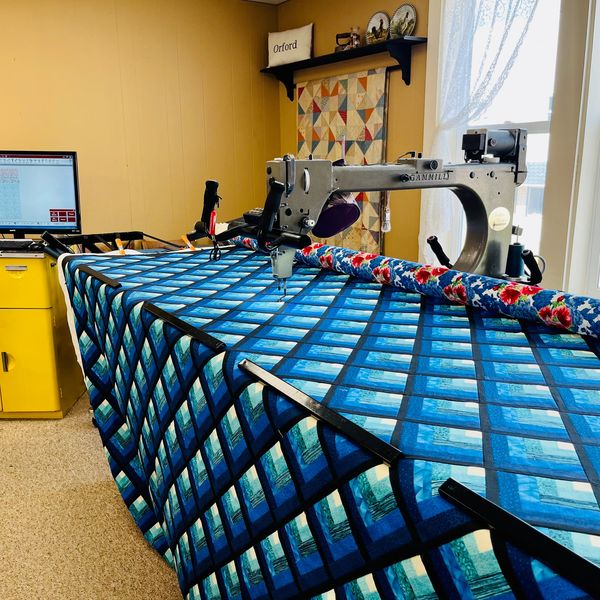We offer longarm quilting services - both all over designs and custom quilting. We also quilt T Shirt Quilts. Prices vary as to the size of your quilt, the density of the design, and customization. Bring your quilt top in, we'll look it over and visit with you about it, then come up with a perfect quilt design to make your work of art an amazing finished quilt.