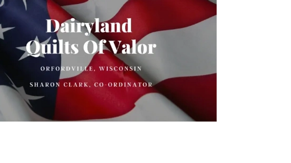 The Dairyland Quilts of Valor Chapter is a group of folks that make quilts and present them to Veterans of all ages. There are sew days at the American Legion and Orfordville Lutheran Church in Orfordville. The Chapter accepts donations of patriotic fabric and quilts, takes nominations of veterans to receive quilts, and presents them at local veterans centers and events.